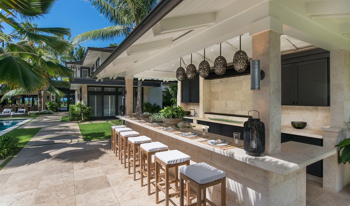 Listed by Anne Oliver, Coldwell Banker Pacific Properties, and designed by award-winning architect Peter Vincent, Hale Palekaiko or “House of Paradise,” offers a main residence of four bedrooms, four-and-one-half baths plus a guest residence with three bedrooms and three-and-one-half baths. The crown jewel of the estate is the outdoor pool pavilion complete with pool, spa, wet bar, HD TV, kitchen area with BBQ and pizza oven and poolside spa bathroom.