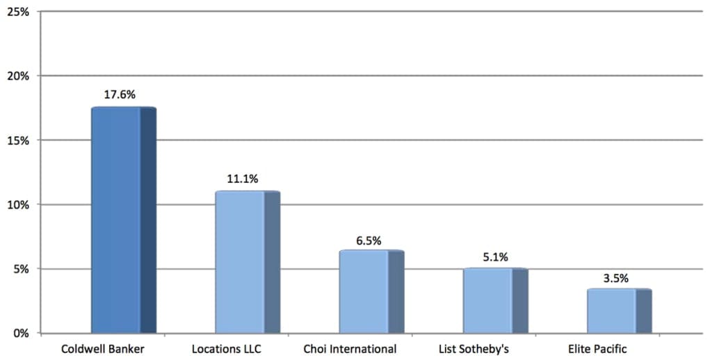 Coldwell Banker Previews International® dominates the high end market with 17.6% of the market share of listings closed – quite a bit more than even the second place brokerage company. Nearly one in five homes listed at $1 million or more is sold by a Coldwell Banker Independent Sale Associate. There is a reason for that. Contact Coldwell Banker Pacific Properties today to learn more.
