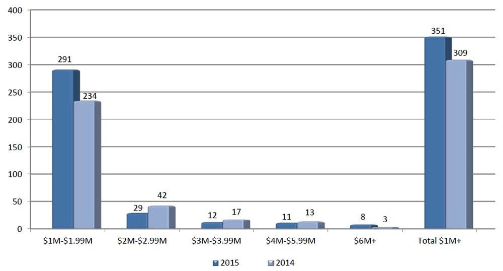 For the first six months of this year, the number of single-family homes priced at $1 million or higher outpaced last year by 14 percent. The first quarter posted a 2 percent increase in the number of sales compared to the same period a year ago. In the second quarter of this year 209 sales closed over $1 million, a 22 percent increase over last year and in fact, was the highest level ever recorded in history.