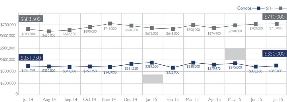 Median Sales Price of Single Family Homes and Condos | July 2015