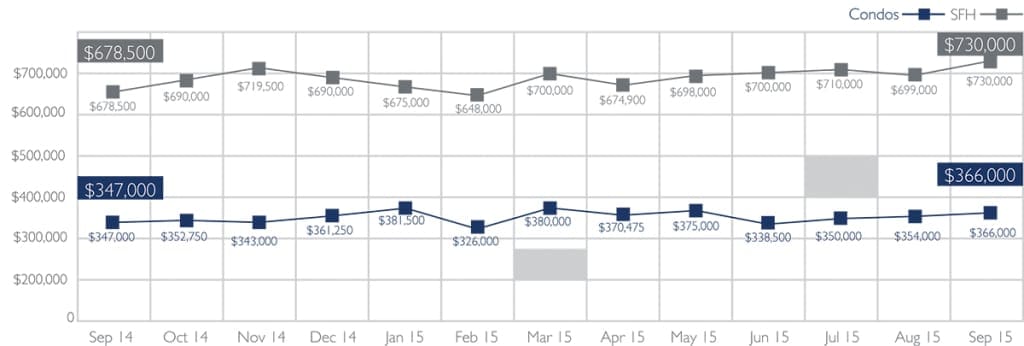 Median Sales Price of Single Family Homes and Condos | September 2015