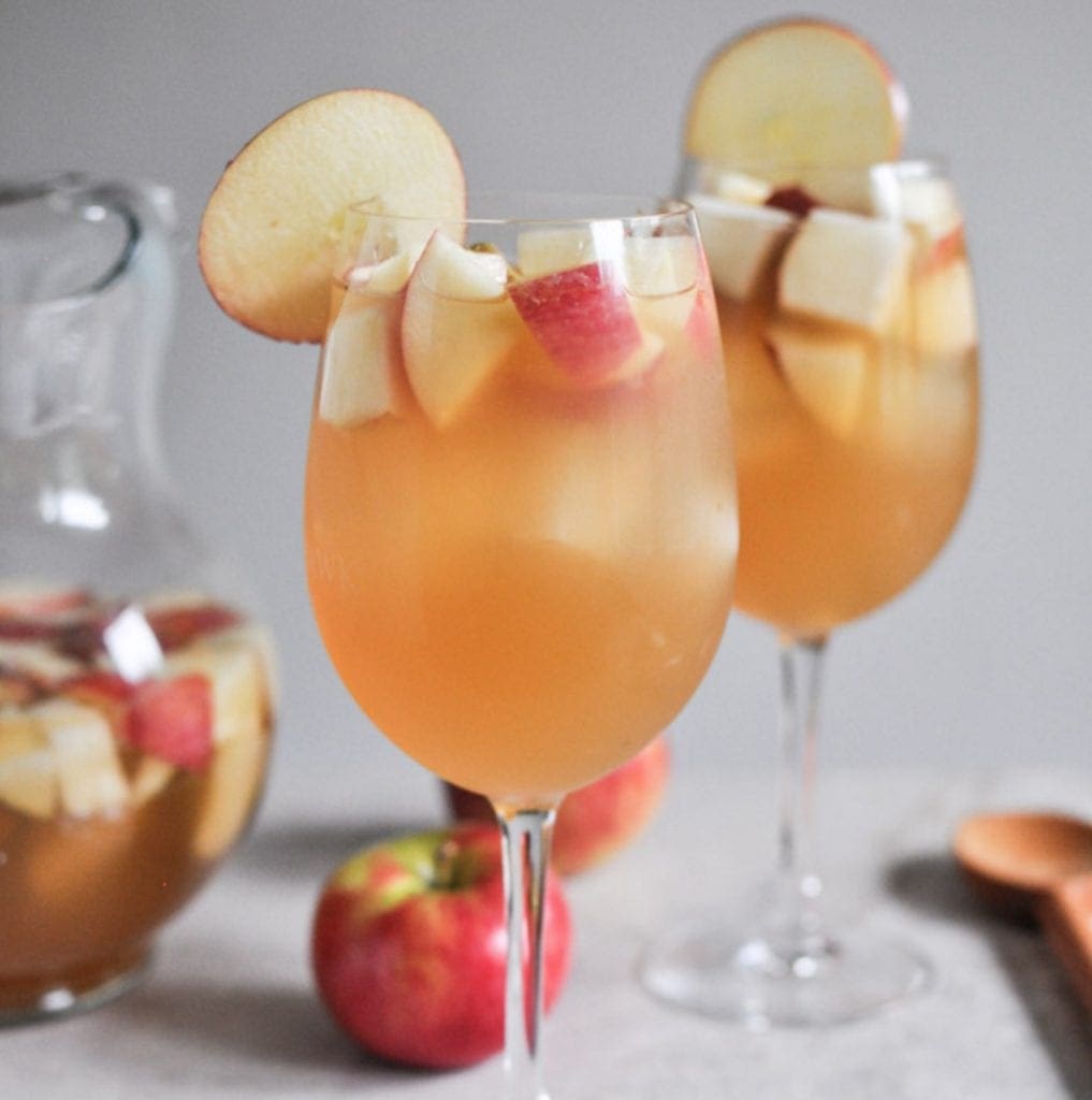 Beat the heat with this refreshing fall-inspired cocktail, which brings apple front and center in this sangria concoction. Supporting ingredients include pinot grigio, club soda, ginger brandy and juicy pears. You can’t go wrong with that winning combination.