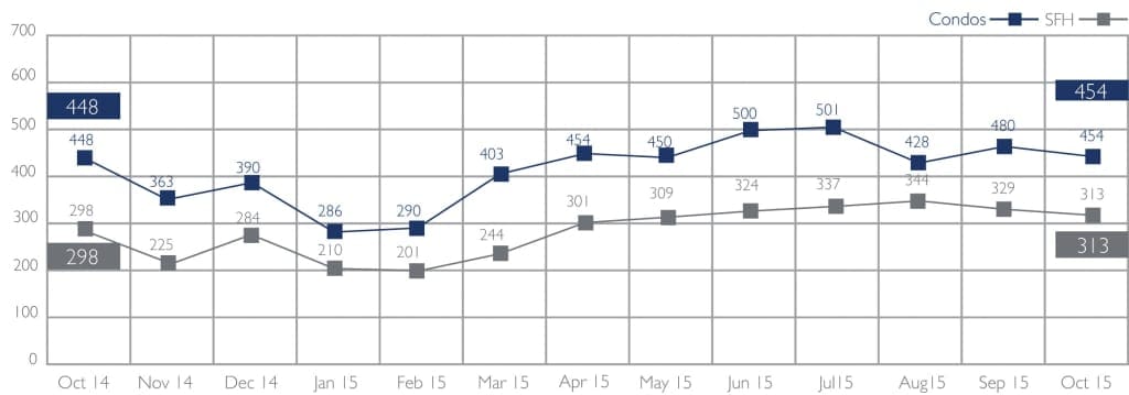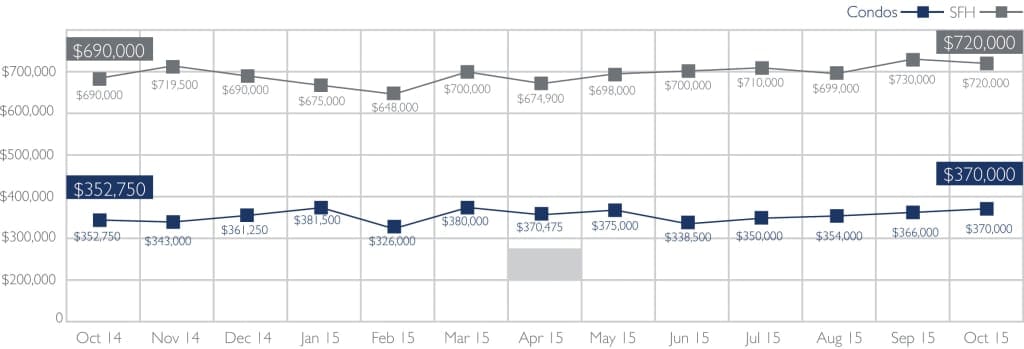 Median Sales Price of Single Family Homes and Condos | October 2015