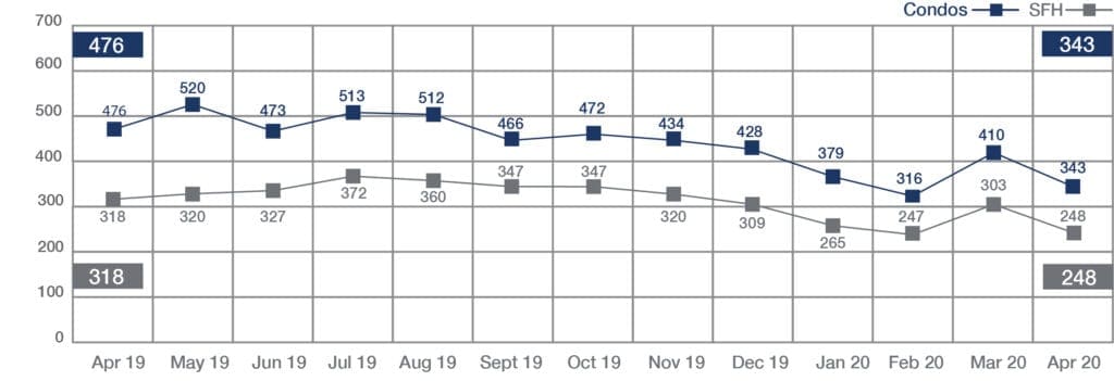 There continues to be a slowdown in the number of new listings coming onto the market due to stay-at-home orders that went into effect on March 23.