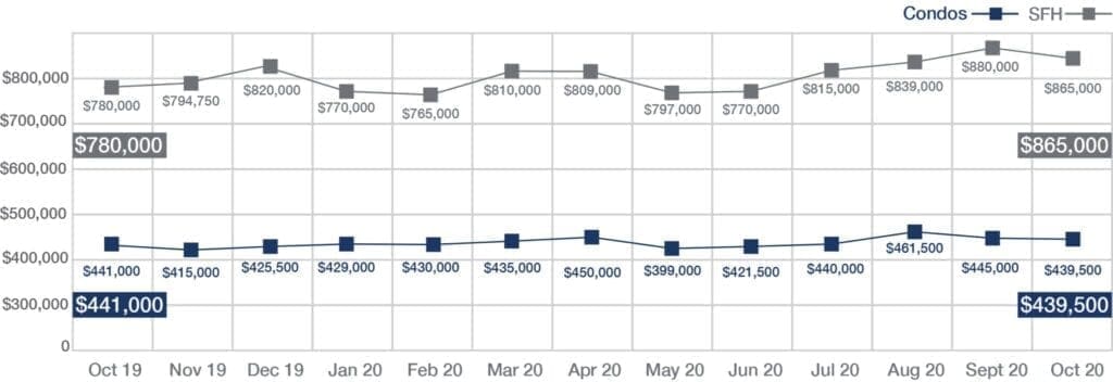 Median Sales Price of Single-Family Homes and Condos | October 2020