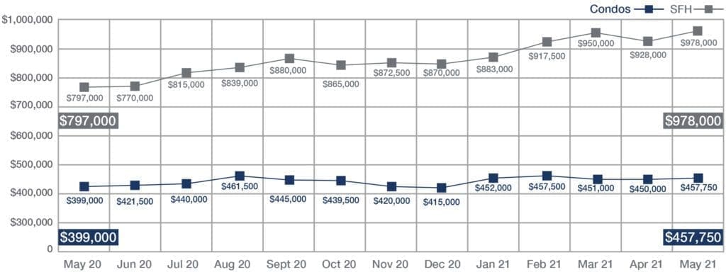 Median Sales Price of Single-Family Homes and Condos | May 2021