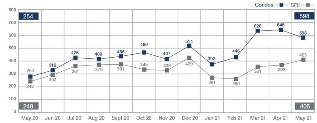 Condo prices also boomed — climbing to $457,750, compared to the MSP in May 2020 of $399,000.