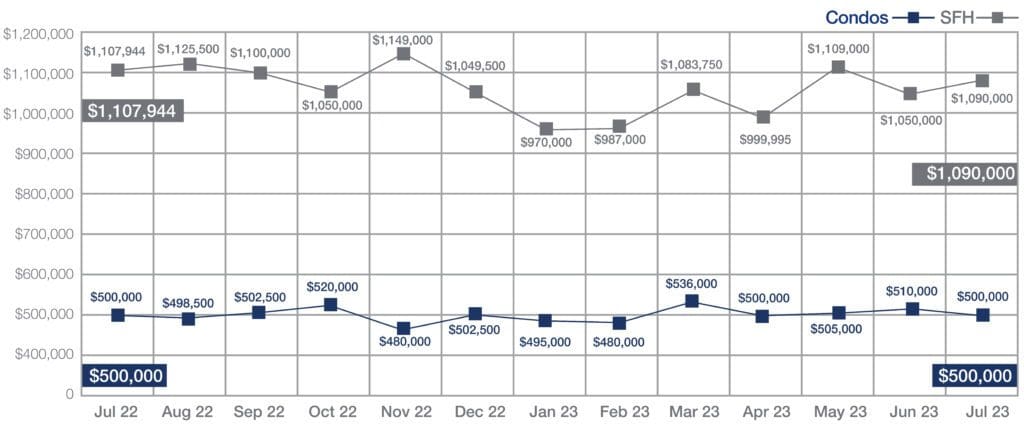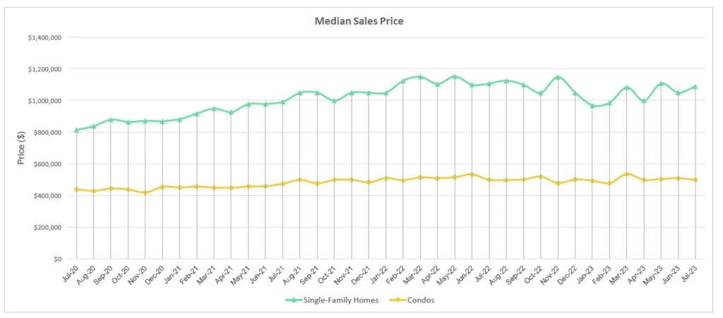 Median Sales Price of Single-Family Homes and Condos | July 2023
