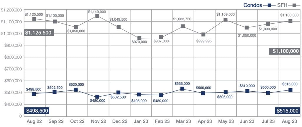 Median Sales Price of Single-Family Homes and Condos | August 2023