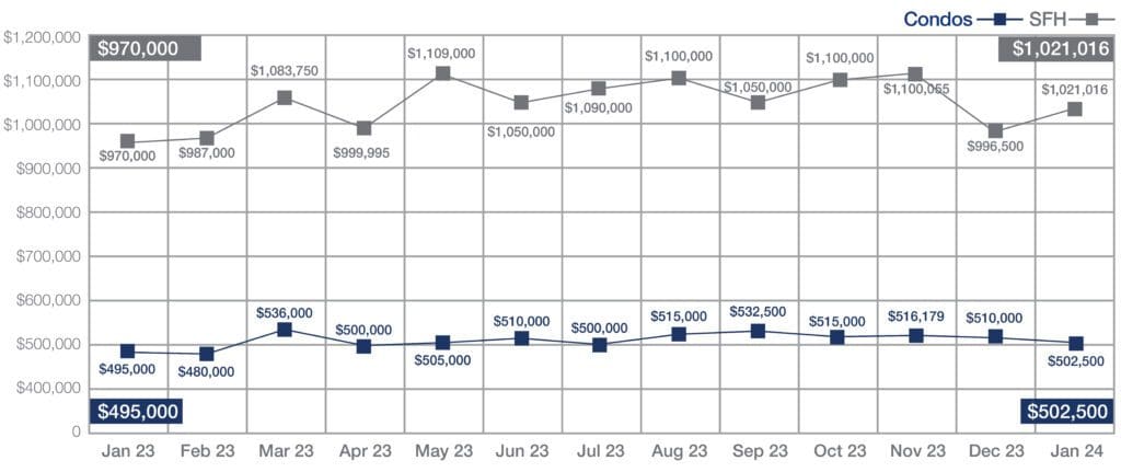 Median Sales Price of Single-Family Homes and Condos | January 2024