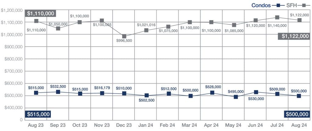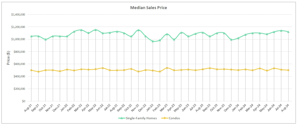 Median Sales Price of Single-Family Homes and Condos | August 2024