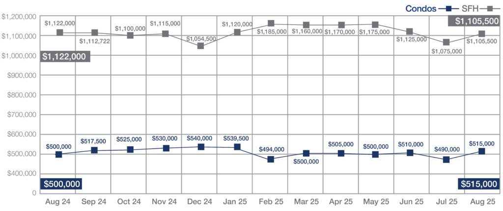 Median Sales Price of Single-Family Homes and Condos | August 2025
