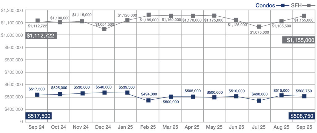 Despite the rise in sales, properties spent more time on the market. Single-family homes recorded a median of 26 days on market, up from 19 days last year, while condos saw a median of 40 days, compared to 31 in September 2024. This shift reflects a more deliberate pace among buyers as they navigate a changing landscape.